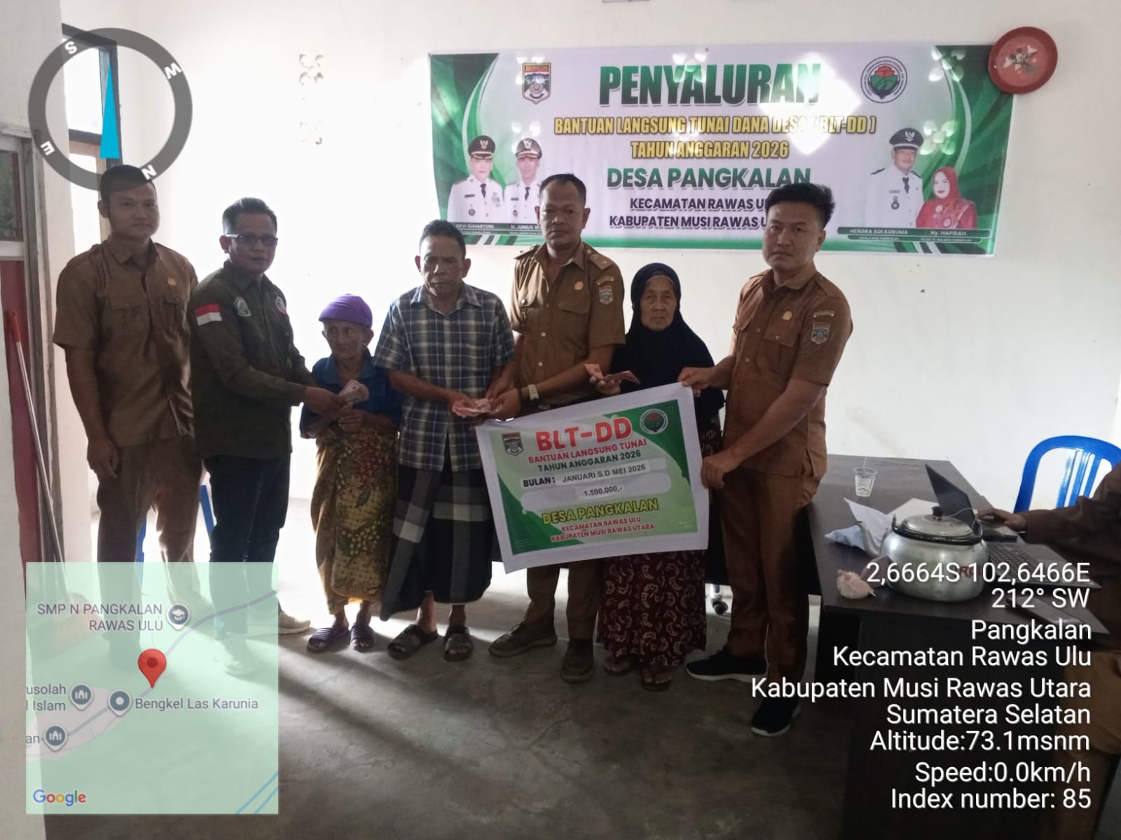 Jurnalmediapublik.com, Musi Rawas Utara – Pemerintah Desa Pangkalan, Kecamatan Rawas Ulu, Kabupaten Musi Rawas Utara (Muratara), kembali menyalurkan bantuan sosial kepada warga kurang mampu. Kali ini, pihaknya mendistribusikan Bantuan Langsung Tunai Dana Desa (BLT-DD) untuk periode Januari hingga Mei 2026 kepada 12 Keluarga Penerima Manfaat (KPM).